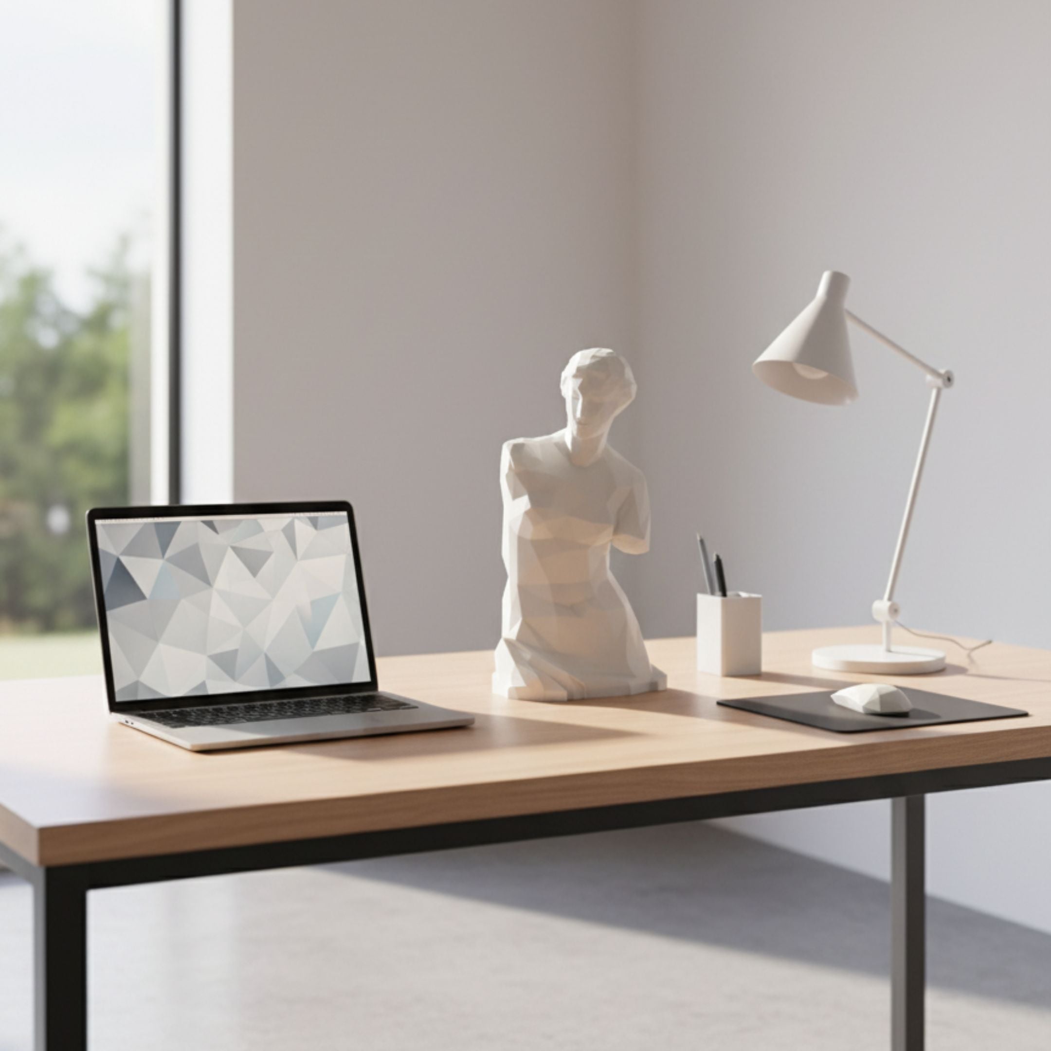 Every design starts as a 3D model. Low-poly geometry inspired by early computer graphics. We refine the form digitally, then translate it to physical through layer-by-layer printing.