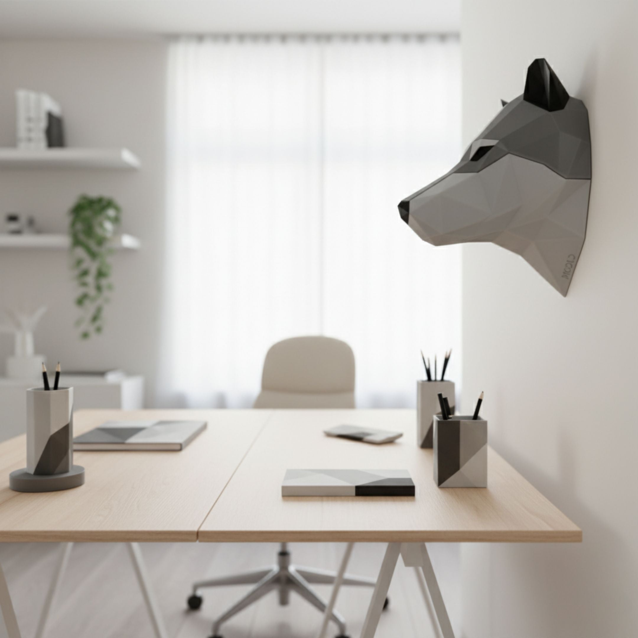 Since that first wolf, our collection has grown into pieces you can display in your home, your gaming setup, or your office. Each one carries the same spirit: a piece of digital craftsmanship brought to life."