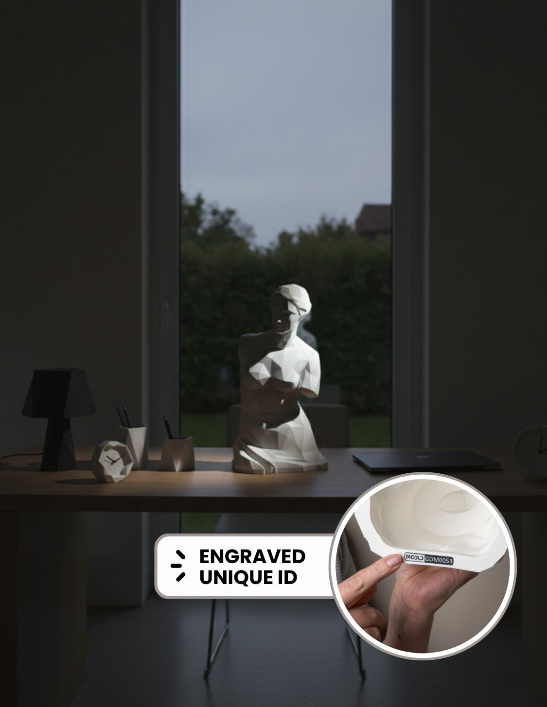 Each model is engraved with a Unicity ID, certifying its exclusivity and genuine MODLD origin. This personalized touch guarantees that your piece is a one-of-a-kind addition to any space.