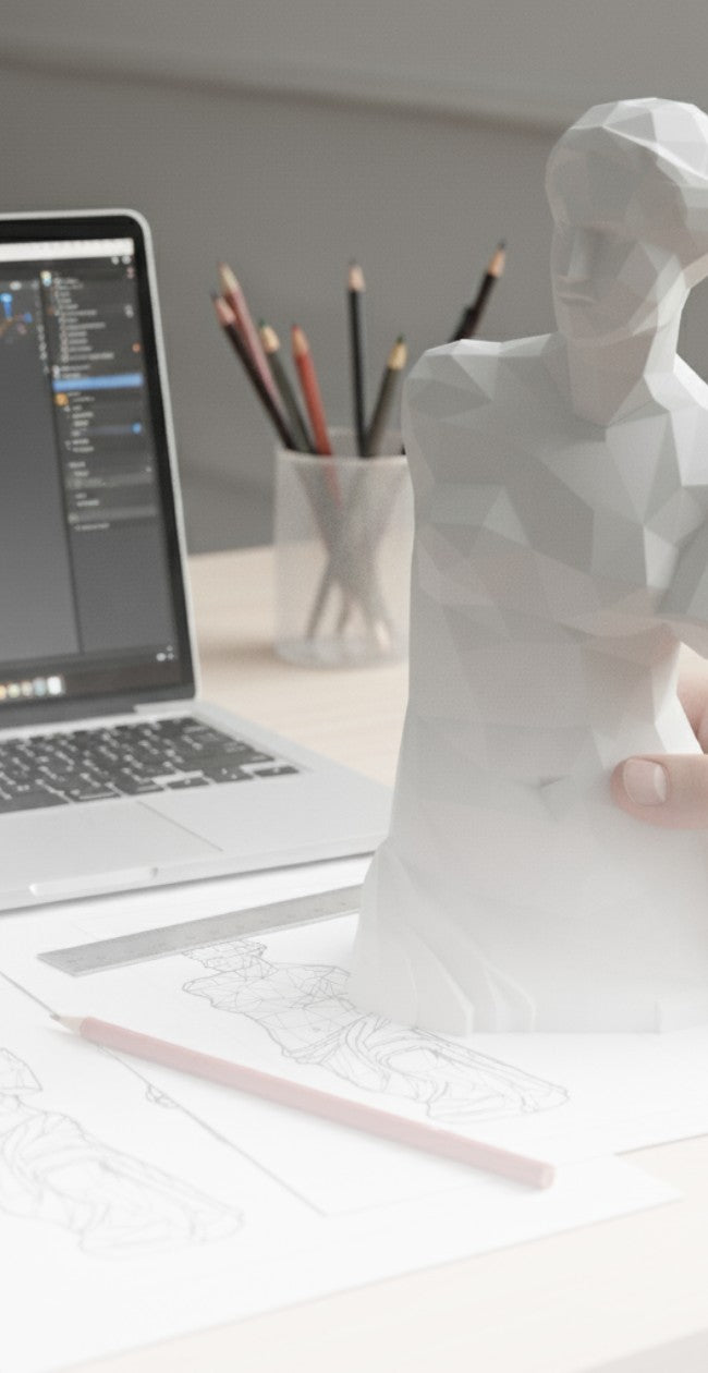 Currently, we focus on our curated collection of low-poly wall statues and 3D-printed art, but weâre always developing new designs. Keep checking our shop for fresh and exclusive models that fit your modern decor needs!