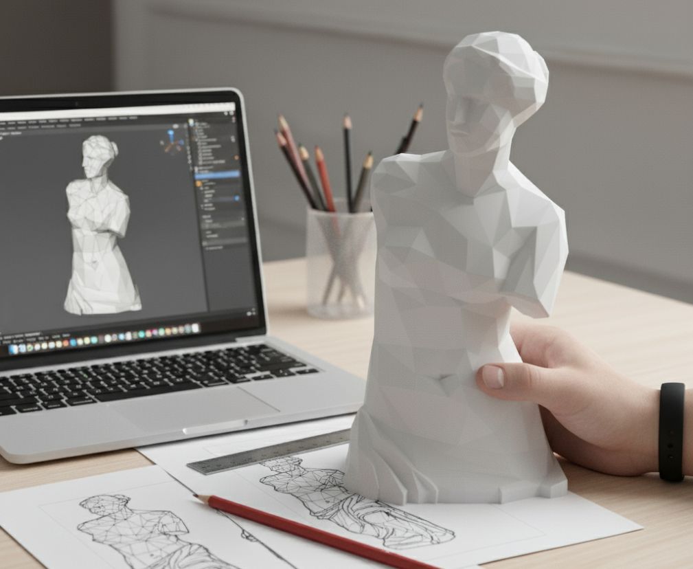 3D-Printed Low Poly Venus Goddess Statue