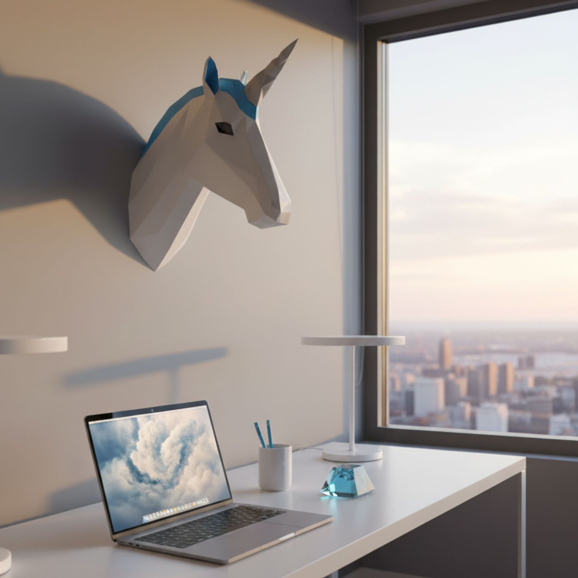 Crafted in MODLD’s signature low-poly style, Nebulon brings crisp angles and futuristic vibes to your space. Forget glitter and rainbows, this unicorn is all edge and elegance. It mounts easily with our invisible wall system, floating like a vision from another dimension.