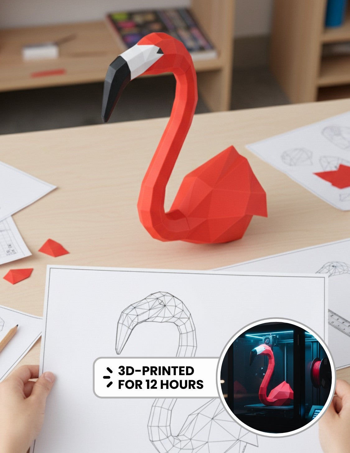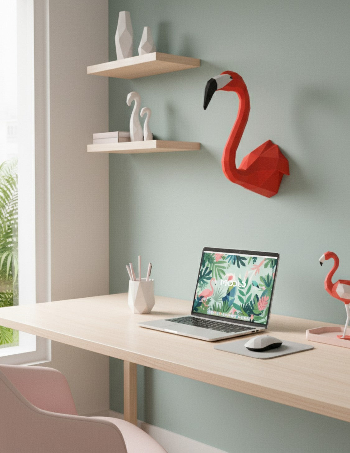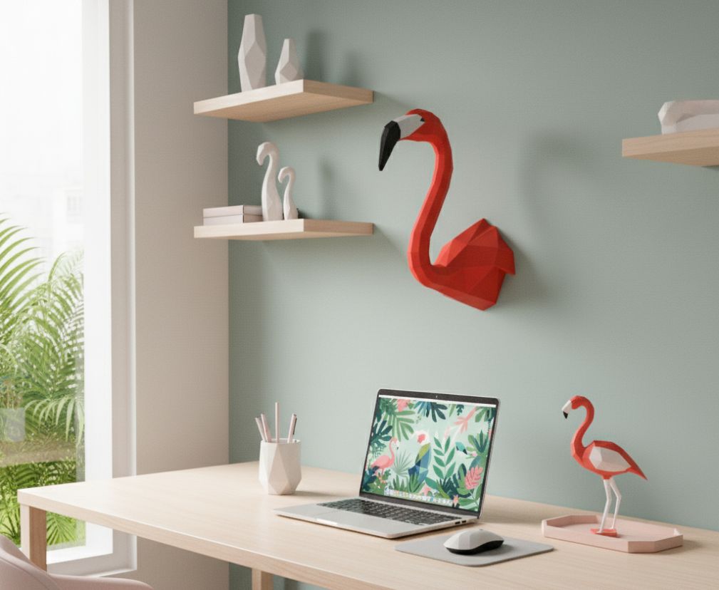 Pinkster brings vibrant low-poly design and unapologetic color to your space. Snaps together in seconds, mounts with our MODLD WallSnap™ system in moments. No nails, no damage, pure personality. Because every room could use a flamingo.