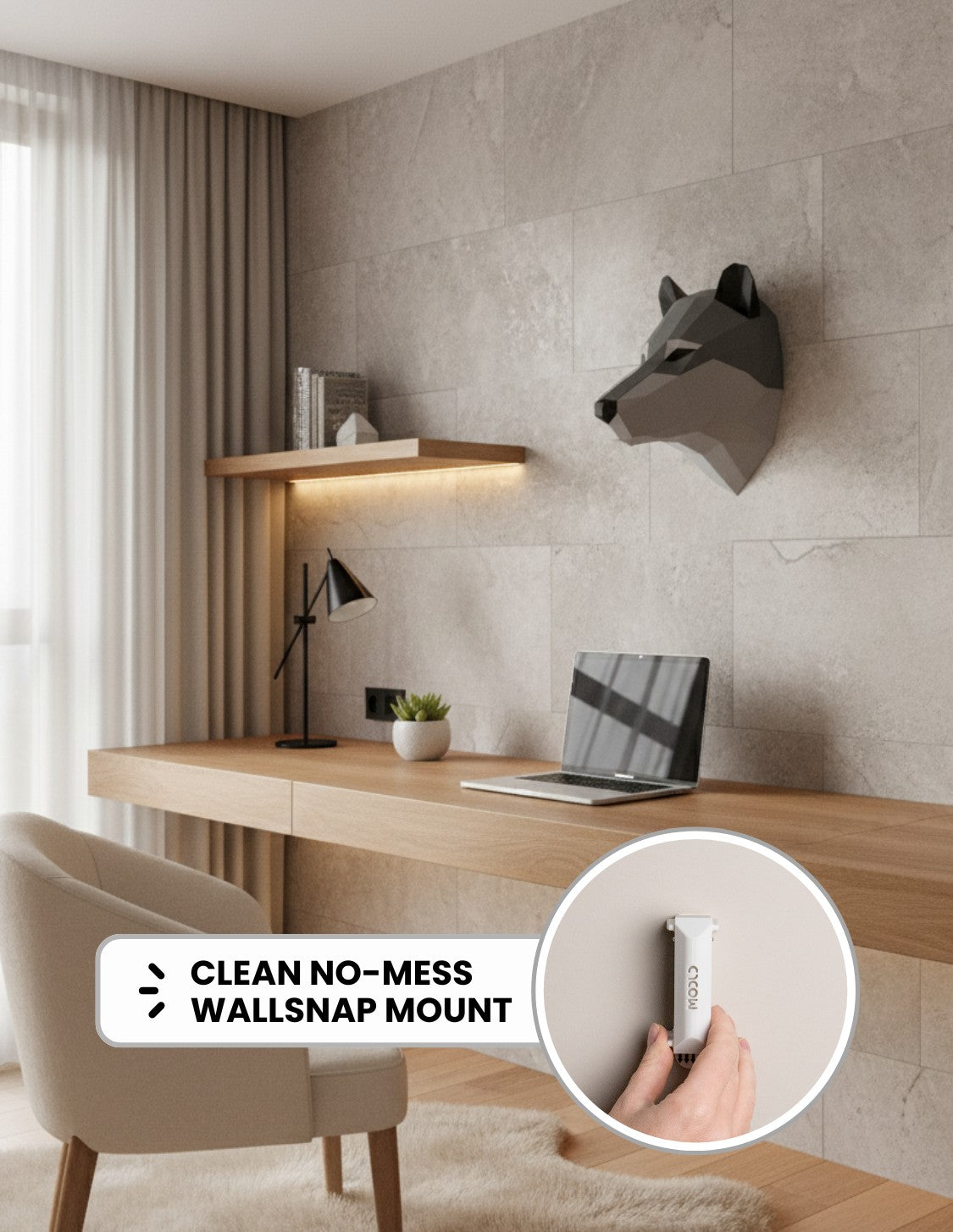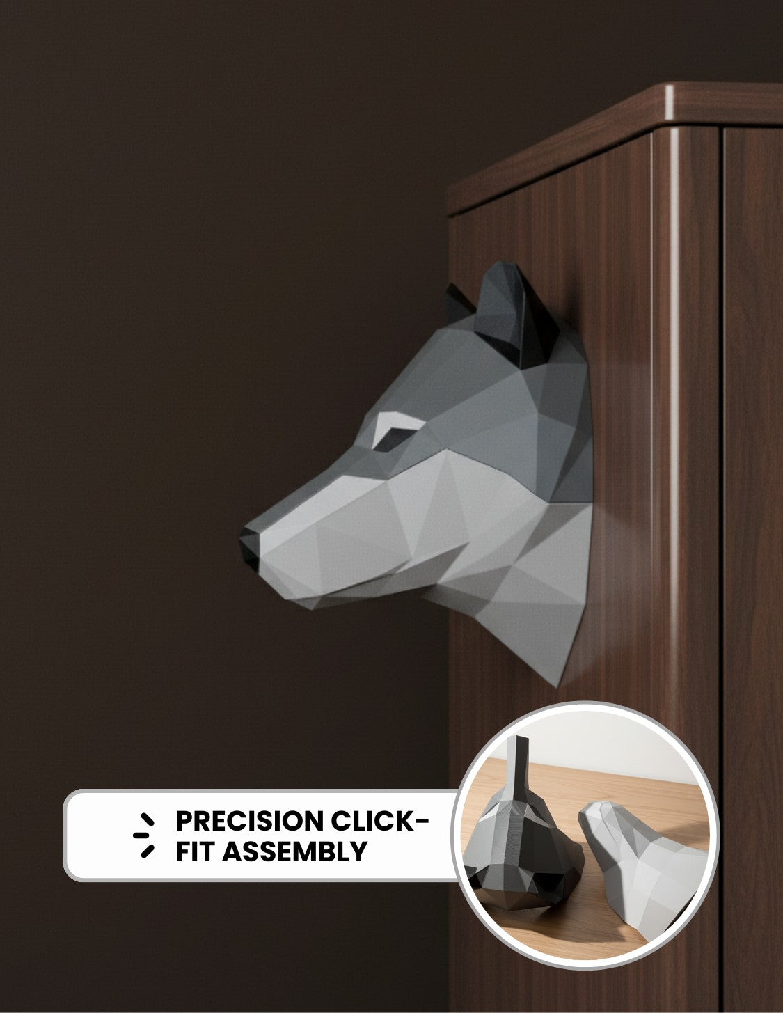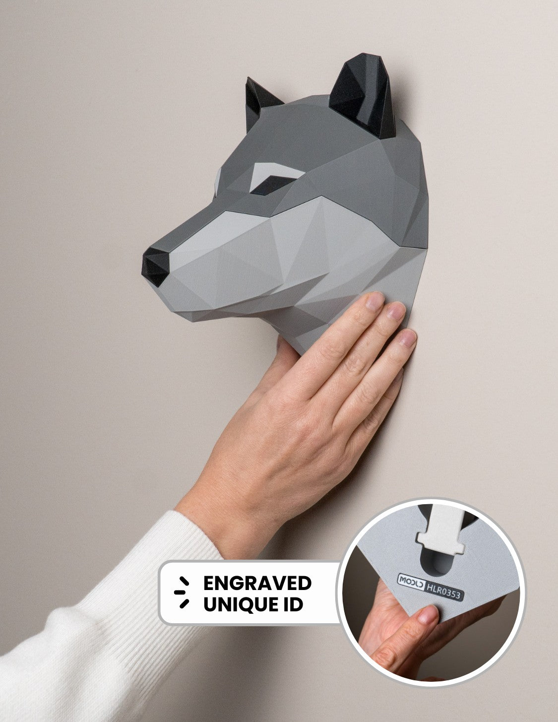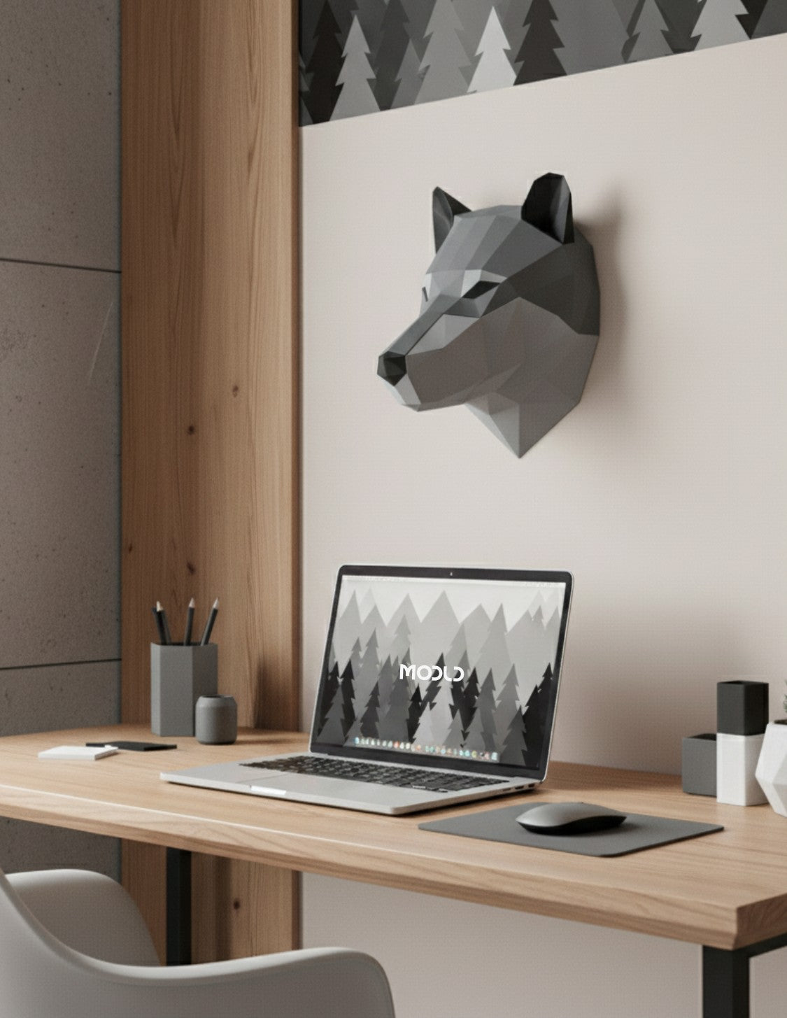 The Howler captures wild presence through precise low-poly design and refined matte finish. Our most engineered piece: enhanced surface texture, millimetric tolerances, satisfying snap-fit assembly. Mounts clean with MODLD WallSnapâ˘. The first. The icon. The statement piece.