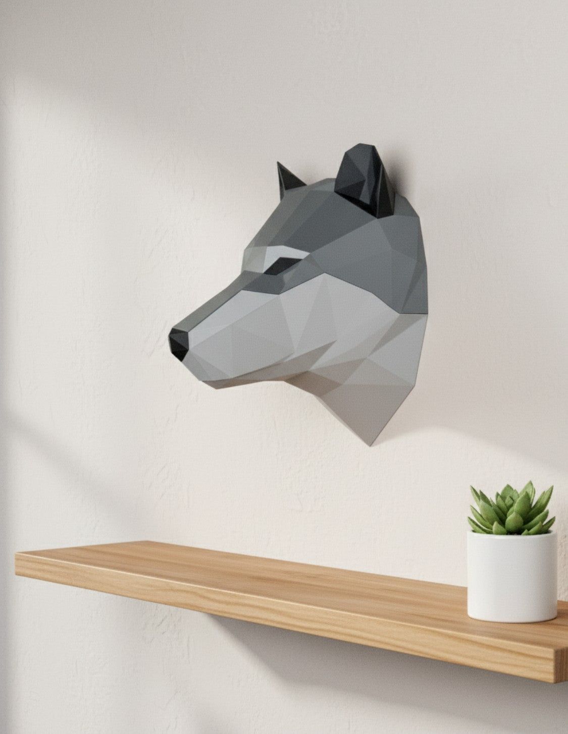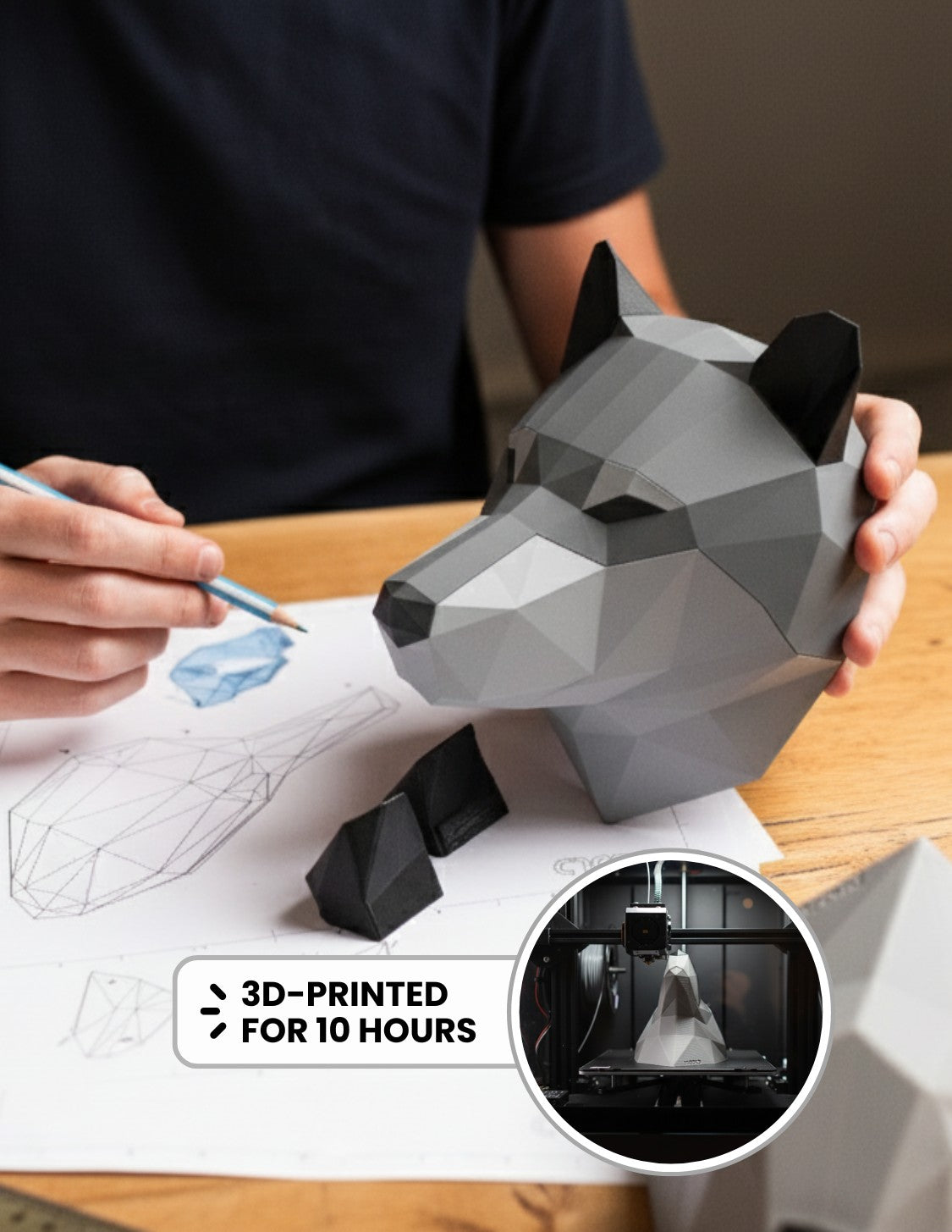 Limited 3D-Printed Low Poly Wolf Head Wall Sculpture